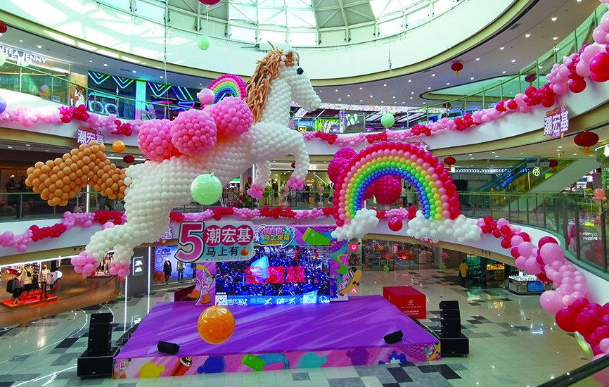走進(jìn)集寧區(qū)萬達(dá)廣場,一樓東門的跨年倒計(jì)時展板格外醒目,“約定,今年要和我愛的人一起跨年”的字樣搭配喜慶的紅色背景,將跨年的儀式感拉滿。商場內(nèi)部的布置巧思盡顯,中庭位置,巨型氣球打造的白色小馬造型栩栩如生,粉色、橙色氣球簇?fù)碜笥遥慌缘牟屎鐨馇蜓b飾蜿蜒舒展,與各品牌門前統(tǒng)一的彩色氣球相映成趣,簡約的裝飾搭配讓節(jié)日氛圍愈發(fā)濃郁。