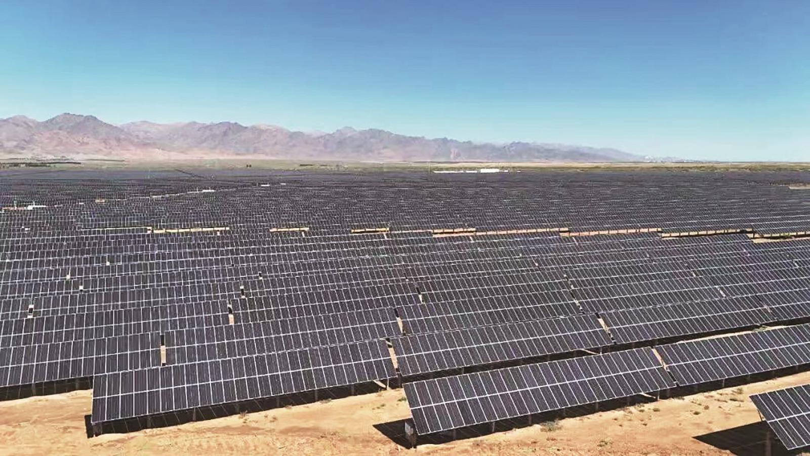 項目位于杭錦后旗太陽廟農(nóng)場與雙廟鎮(zhèn),總投資約11.89億元,占地8648畝,創(chuàng)新采用“板上發(fā)電、板下治沙、樁基固沙”一體化模式,真正實現(xiàn)了清潔能源生產(chǎn)與生態(tài)修復深度融合,走出了一條“光伏賦能治沙、綠電反哺生態(tài)”的可持續(xù)發(fā)展新路子。