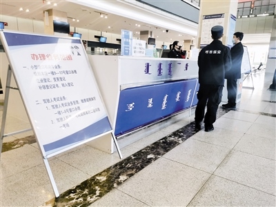 “你好!違章查詢和罰款繳納需要去交管隊(duì),不在這里辦理。如果是本人車輛,也可下載12123 APP進(jìn)行辦理?!?月18日9時(shí)10分,記者走進(jìn)呼和浩特市交警支隊(duì)車輛管理所,在政務(wù)服務(wù)中心東大廳正對著大門的導(dǎo)辦臺(tái),一位民警正在接受市民業(yè)務(wù)咨詢。記者看到,大廳里往日喧囂熱鬧的場景不見了,只有零星幾位市民在辦理業(yè)務(wù)。