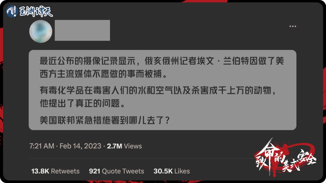 2月3日,俄亥俄州一列運(yùn)載有毒化學(xué)品的列車脫軌并著火,久久不能確定下來的污染范圍和程度,最終引發(fā)了全世界的擔(dān)憂。