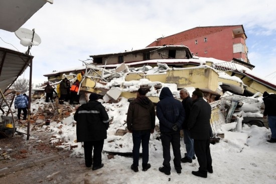 2月7日,人們?cè)谕炼淇ê绽R拉什省的埃爾比斯坦地區(qū)展開救援工作。