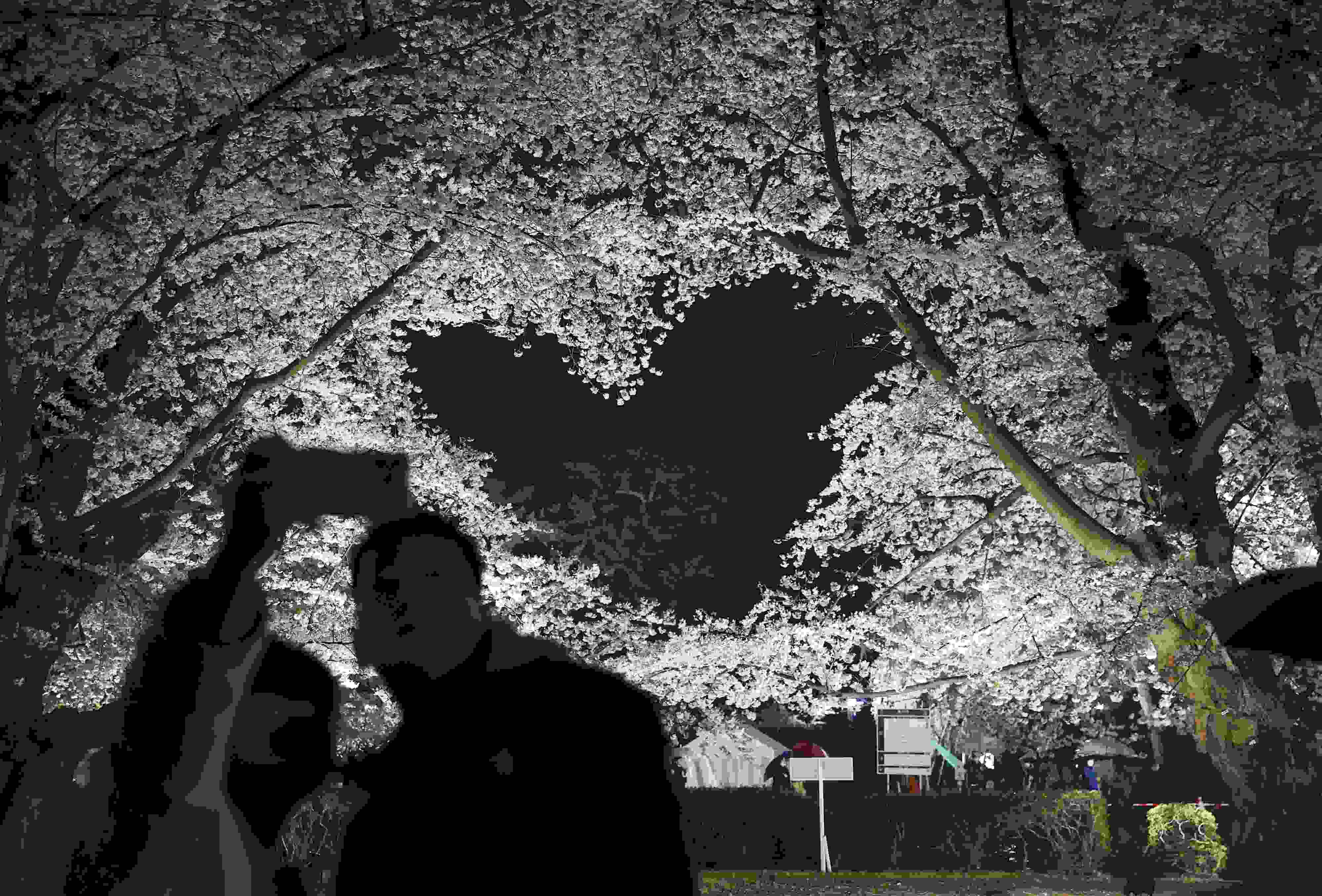 當(dāng)?shù)貢r(shí)間2023年4月15日,日本青森縣弘前市弘前公園的櫻花進(jìn)入盛開季。其中,有兩株盛開的櫻花樹枝相互交織,在空中形成了一個(gè)愛(ài)心形狀,成為熱門觀光景點(diǎn)。 視覺(jué)中國(guó)