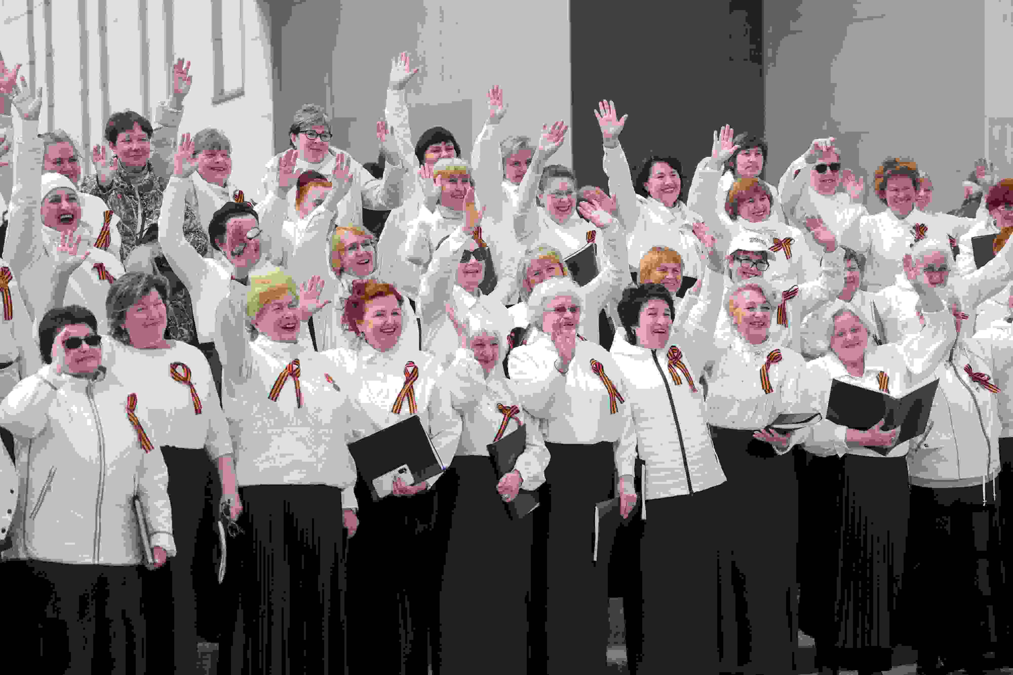 當(dāng)?shù)貢r間2023年5月8日,俄羅斯莫斯科,合唱團(tuán)在紀(jì)念二戰(zhàn)勝利78周年的音樂會上表演。 視覺中國