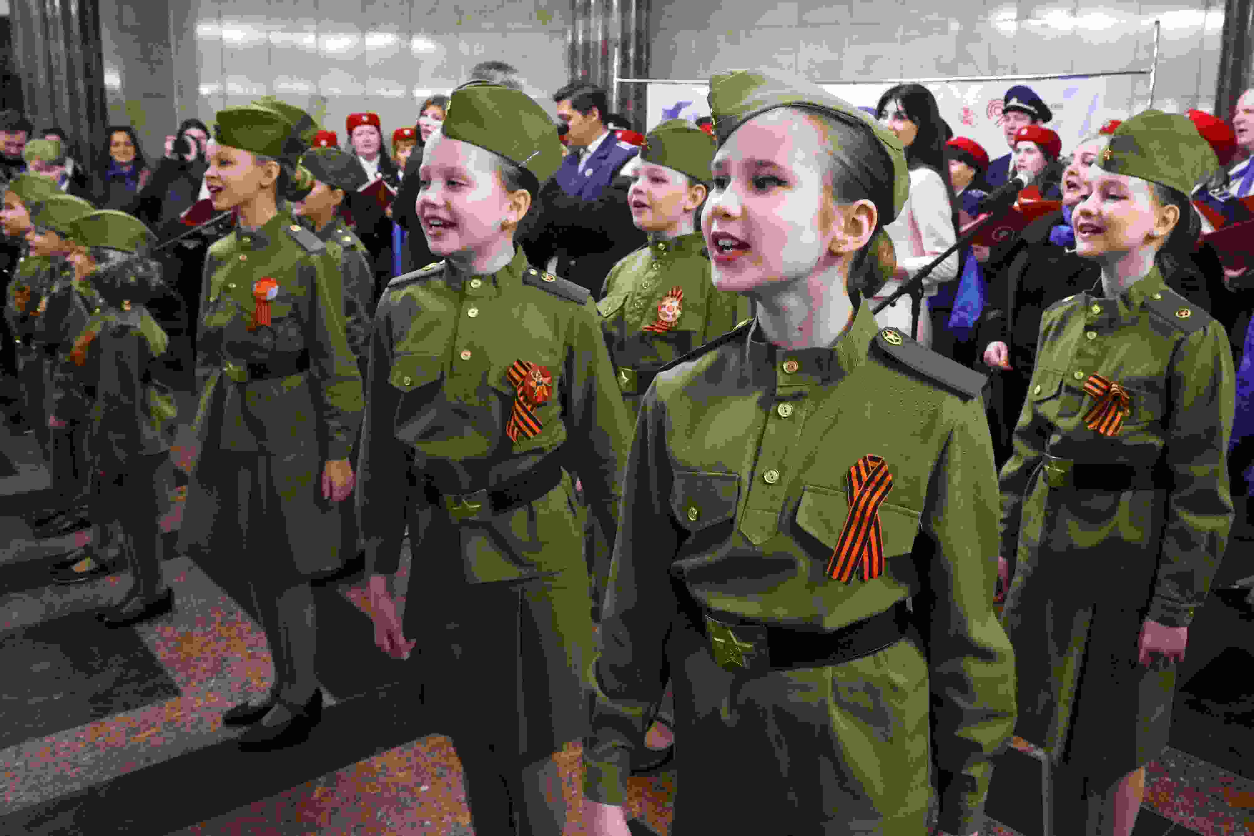 當(dāng)?shù)貢r間2023年5月8日,俄羅斯莫斯科,兒童在紀(jì)念二戰(zhàn)勝利78周年的音樂會上表演。 視覺中國