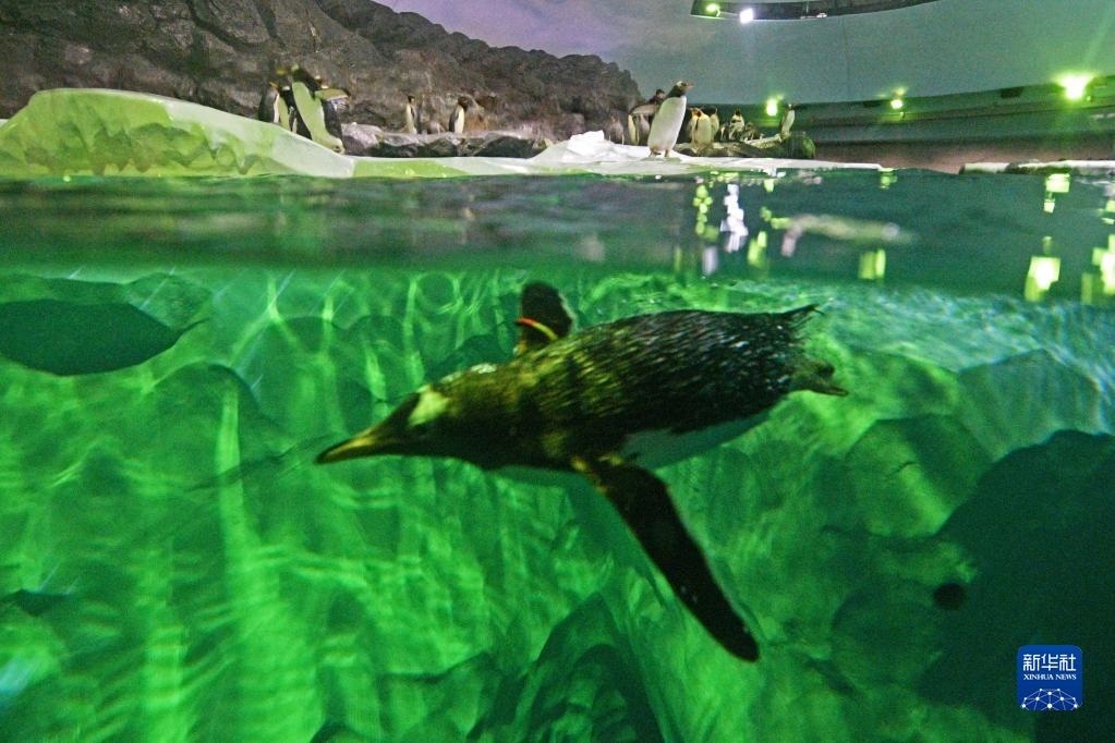 這是5月8日新加坡飛禽公園開放當(dāng)天拍攝的潛水的企鵝。