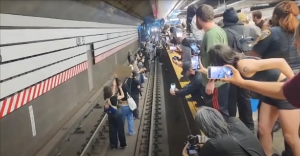 《紐約郵報》稱,視頻顯示,當(dāng)?shù)貢r間6日晚6時左右,在紐約市一地鐵站,多名抗議示威者跳入地鐵軌道,將迎面駛來的地鐵逼停??棺h者高呼“沒有正義,沒有和平”,而在背景聲音中,可以聽到警察試圖呼吁維持秩序。這群示威者呼吁為尼利討回公道。這一危險舉動導(dǎo)致該地鐵站暫時停運(yùn)。