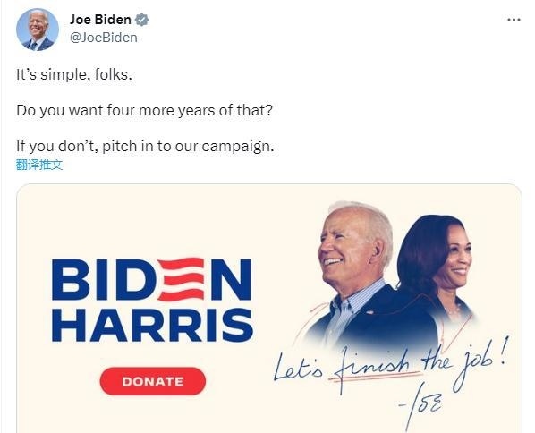 CNN注意到,在特朗普的直播結(jié)束后不久,美國總統(tǒng)拜登在社交媒體上發(fā)出了政治籌款呼吁,并配文稱,“很簡單,伙計們。 你還想再那樣過四年嗎?如果你不喜歡,請參與我們的競選活動?!?/p>