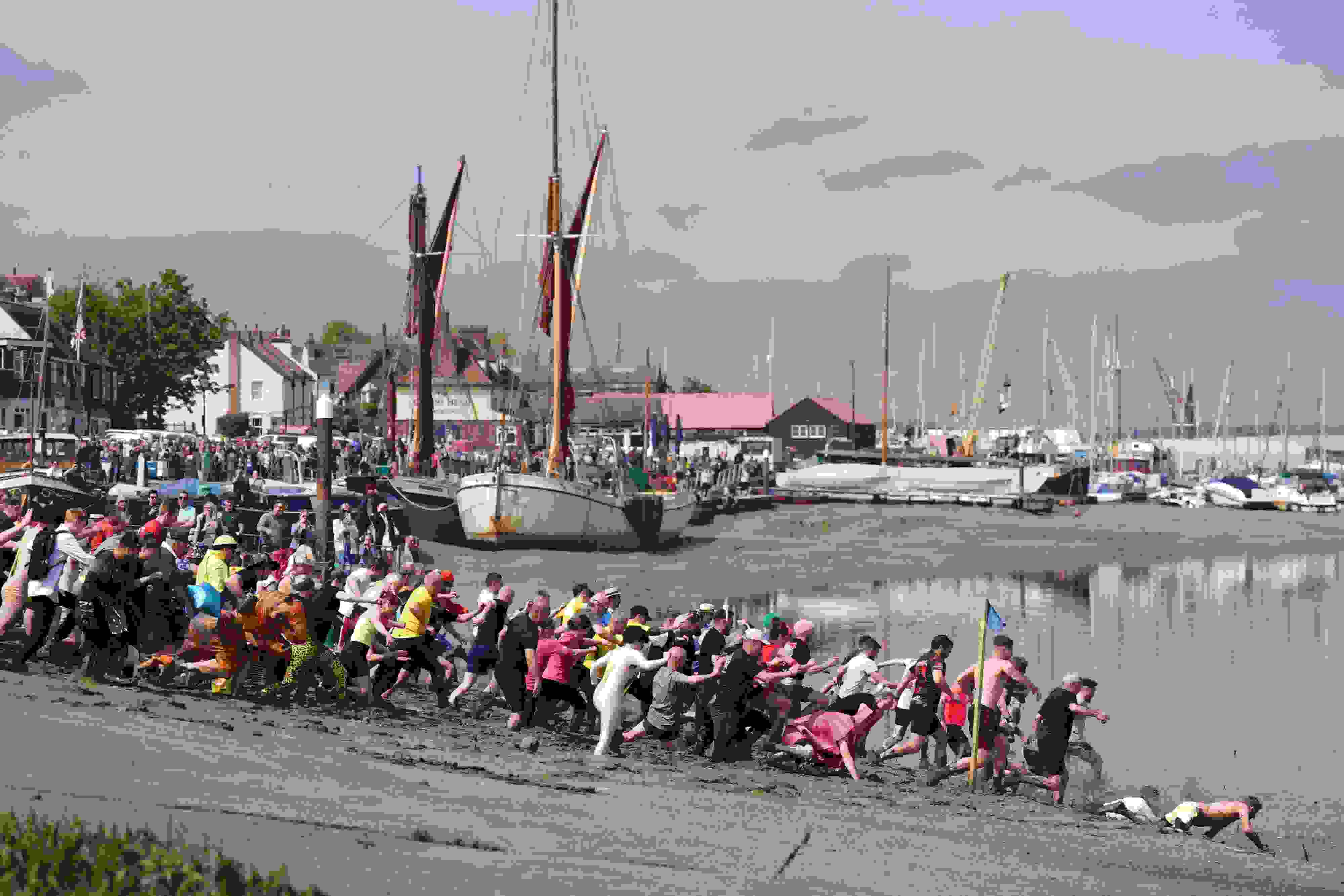 當?shù)貢r間2023年5月14日,英國莫爾登,參賽者參加一年一度的滾泥巴大賽。該大賽是一項慈善活動,參賽者要在埃塞克斯郡的黑水河河床上賽跑。 視覺中國