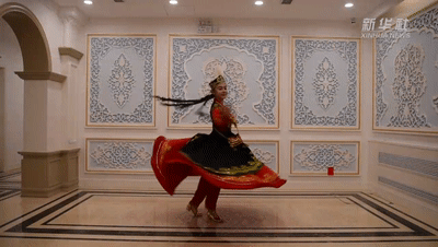 “左旋右轉(zhuǎn)不知疲,千匝萬周無已時。人間物類無可比,奔車輪緩旋風遲?!背錆M活力的跳躍和旋轉(zhuǎn)是胡旋舞最顯著的特征。而經(jīng)過千年的融合與傳承,這一元素已深深融入到中國和中亞國家多種舞蹈形式當中。