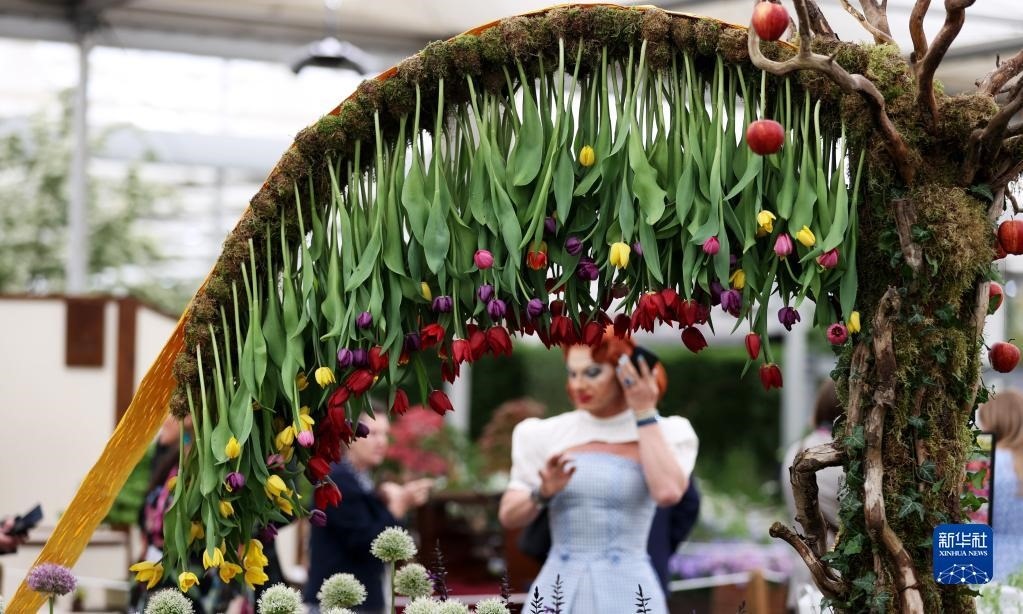 5月22日,一名工作人員在英國倫敦參加切爾西花展媒體日。