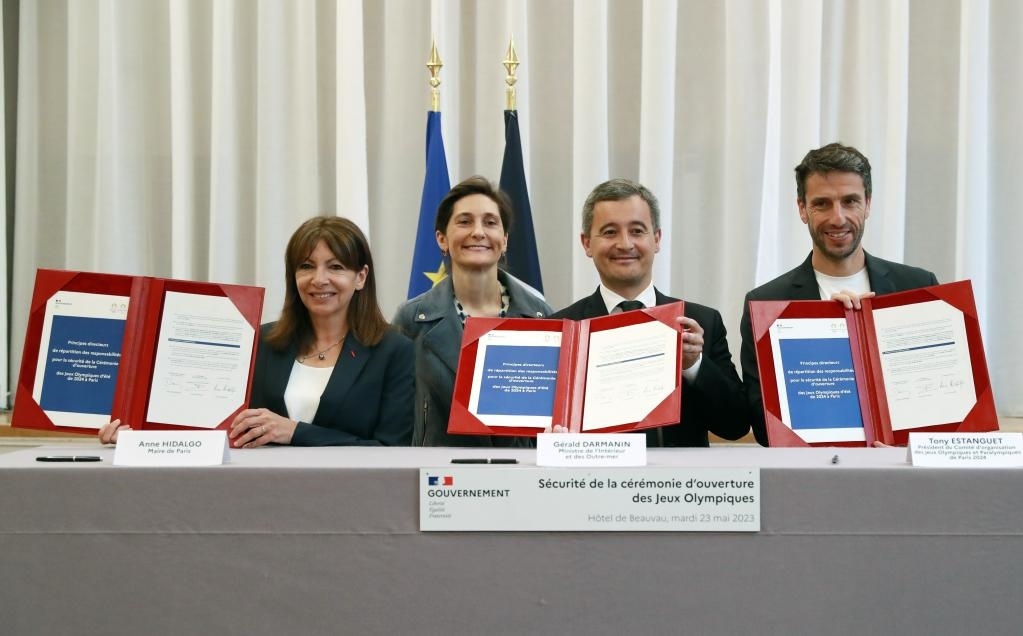 5月23日,為確保巴黎奧運(yùn)會(huì)“河上”開(kāi)幕式安全順利舉行,法國(guó)內(nèi)政部、巴黎奧組委、巴黎市政府三方在巴黎簽訂協(xié)議,明確各自的安保職責(zé)。新華社記者 高靜 攝