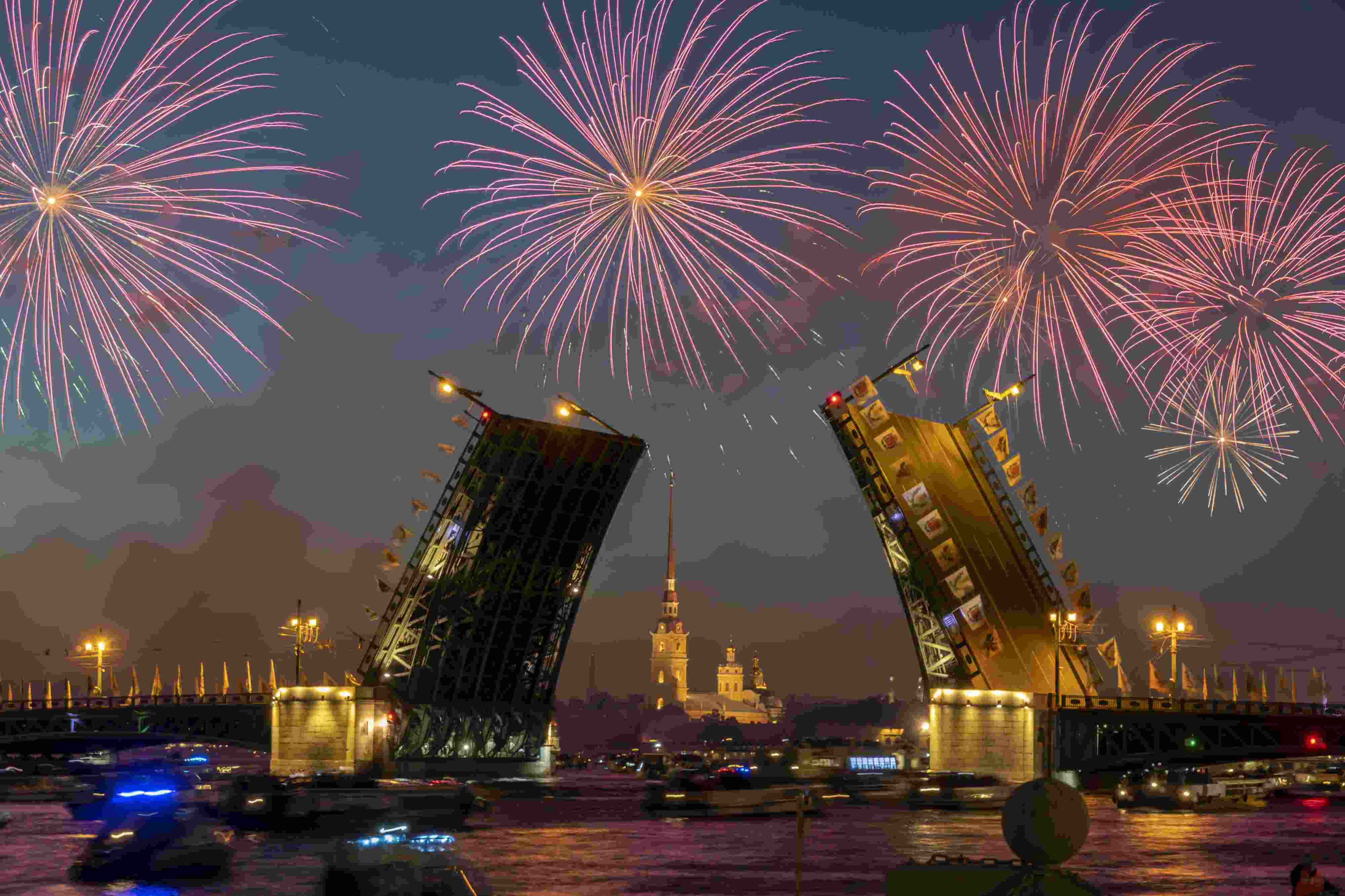 當(dāng)?shù)貢r(shí)間2023年5月28日,俄羅斯圣彼得堡燃放煙花慶祝建城320周年。 視覺(jué)中國(guó)