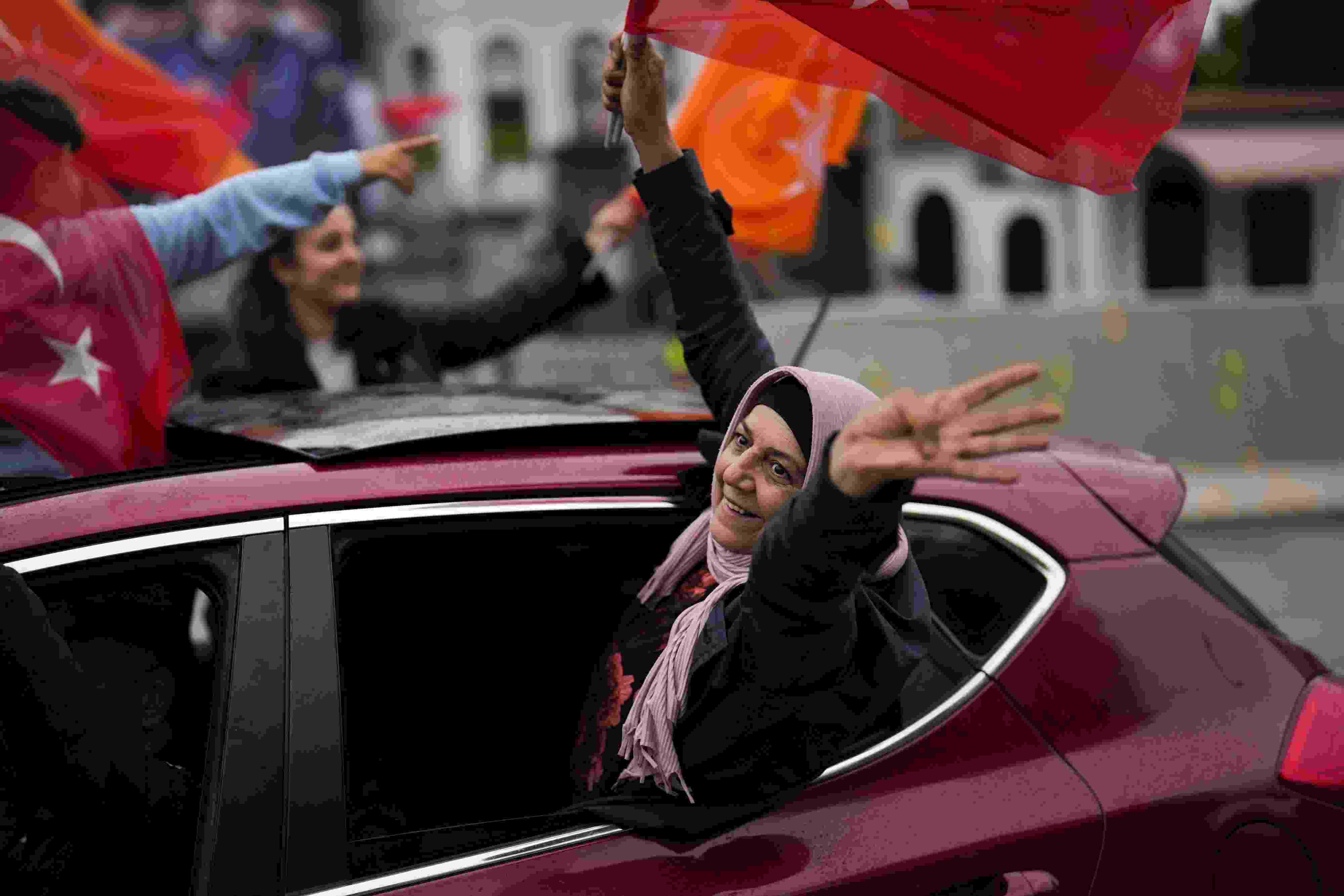埃爾多安再次當(dāng)選土耳其總統(tǒng) 支持者街頭慶祝