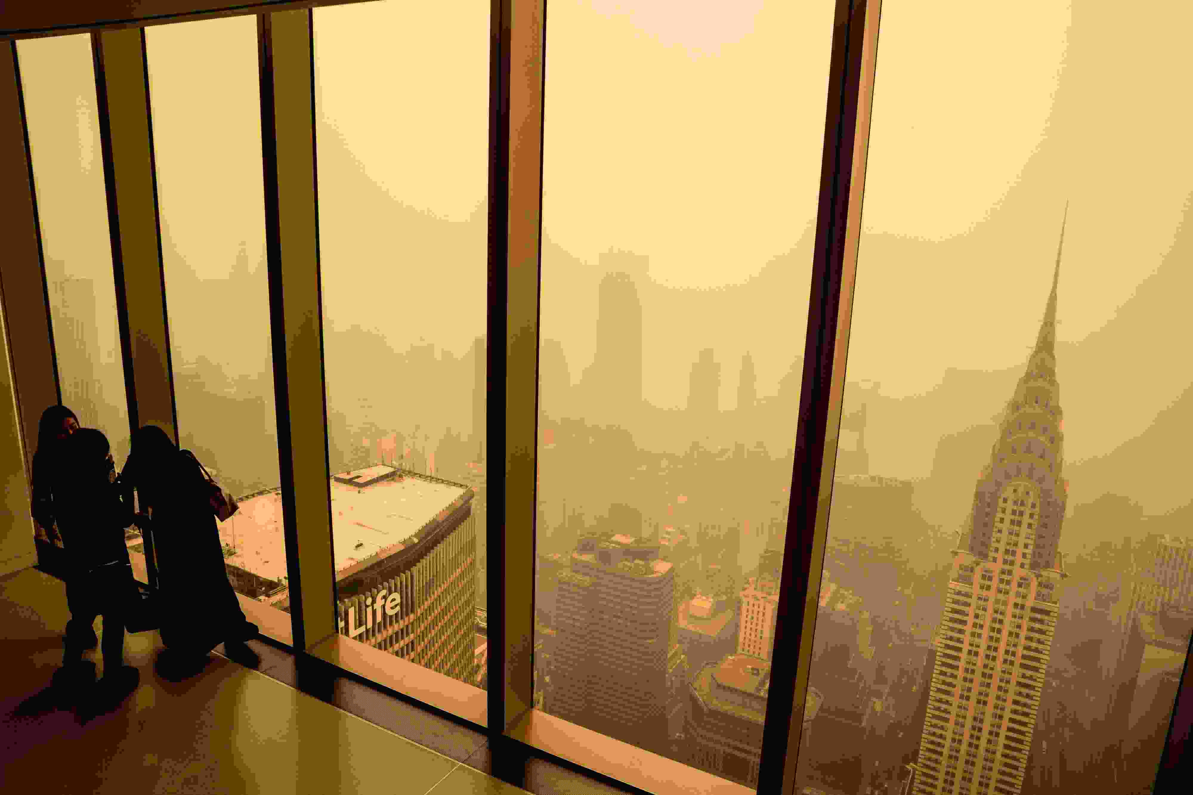 當(dāng)?shù)貢r間2023年6月7日,受加拿大野火煙霧持續(xù)南下影響,美國紐約籠罩在“橙色霧霾”中。當(dāng)天,紐約成為全球空氣污染最嚴(yán)重的城市。 視覺中國