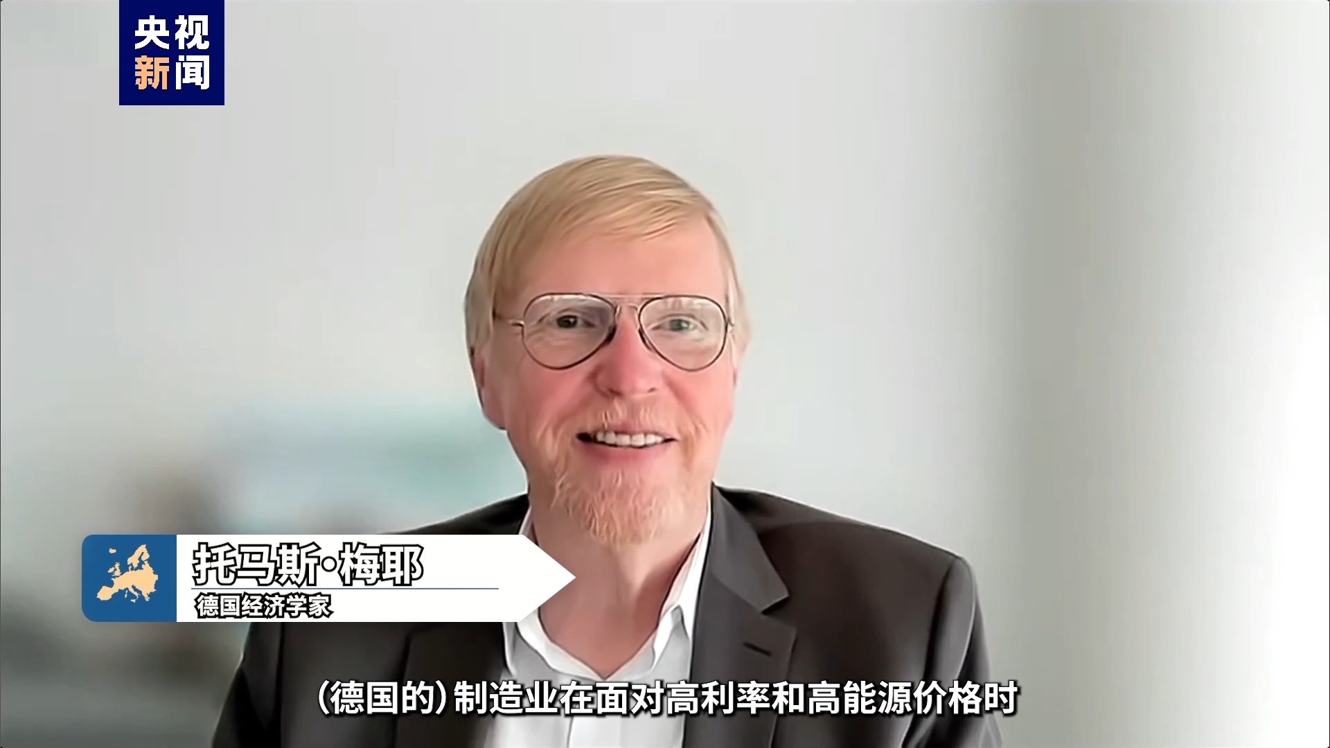 德國經(jīng)濟學家 托馬斯.梅耶:德國的制造業(yè)在面對高利率和高能源價格時受到的沖擊比服務業(yè)更大。比如說,生產(chǎn)一輛汽車,需要消耗大量能源;或者煉鋼和機械加工,也需要能源。同時,當利率較高時,人們的消費也會受限。與此相比,其他國家的服務業(yè)對能源價格和高利率就不那么敏感。