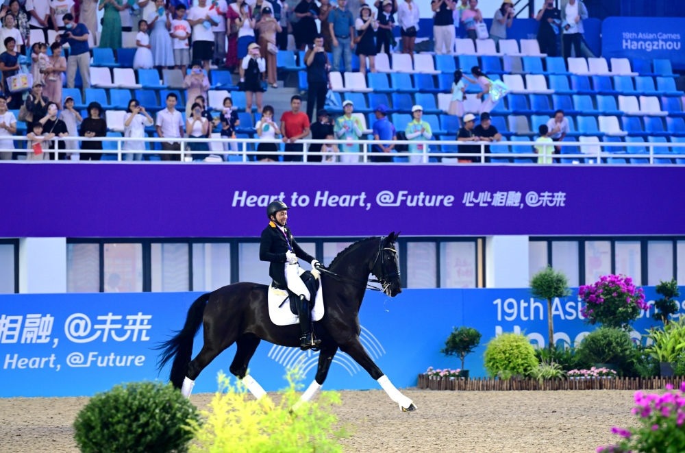 來(lái)自馬來(lái)西亞的安巴克在杭州亞運(yùn)會(huì)馬術(shù)盛裝舞步項(xiàng)目個(gè)人賽上奪得金牌。而這一刻,他等了足足25年。