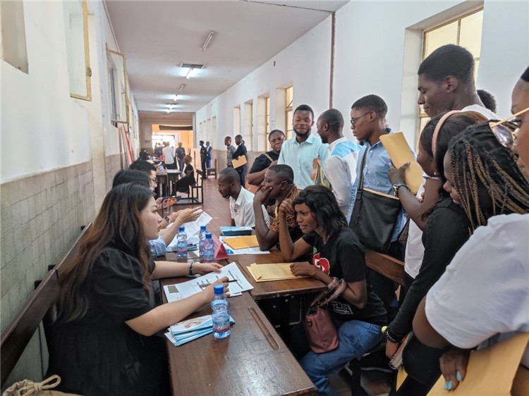 人民網(wǎng)金沙薩7月26日電 (記者閆韞明)日前,剛果(金)外交學院孔子學院在下屬教學點貢貝中學舉辦在剛中國企業(yè)專場招聘會,中鐵七局、中鐵八局、保利長大、華為公司、傳音手機、中海外、洛陽鉬業(yè)等13家中國企業(yè)參加此次活動,總計提供相關工作崗位80余個。來自金沙薩大學、金沙薩土木建筑學院、金沙薩新聞傳媒學院等7所當?shù)馗咝5?00余名學生報名參加此次招聘會。