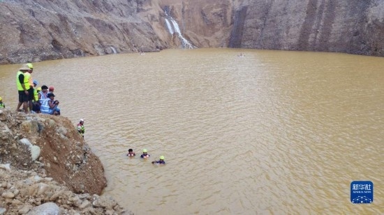 從事故現(xiàn)場(chǎng)發(fā)回的照片和視頻看,救援和遺體搜尋工作主要在坍塌礦區(qū)的堰塞湖進(jìn)行。