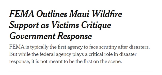 《紐約時報》8月14日報道,聯(lián)邦緊急事務(wù)管理局要求人們在網(wǎng)站上注冊后才能獲得臨時住房等援助,但是毛伊島西部受災(zāi)最嚴(yán)重地區(qū)目前依然處于斷電斷網(wǎng)中,那里的災(zāi)民根本無法登錄網(wǎng)站。