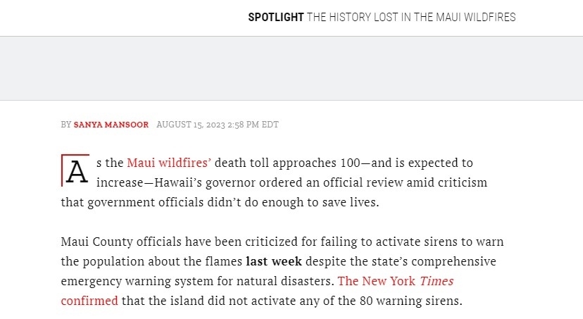 據(jù)悉,夏威夷毛伊島部署有80個警報器,但是在此次野火來襲過程中,警報器并未響起。安達(dá)亞16日曾表示,他并不后悔沒有拉響警報器,因為警報器通常是用來警示海嘯的,反而可能導(dǎo)致很多民眾逃向內(nèi)陸地勢較高處,從而進(jìn)入火海。這一表態(tài)激起了廣泛爭議和批評。