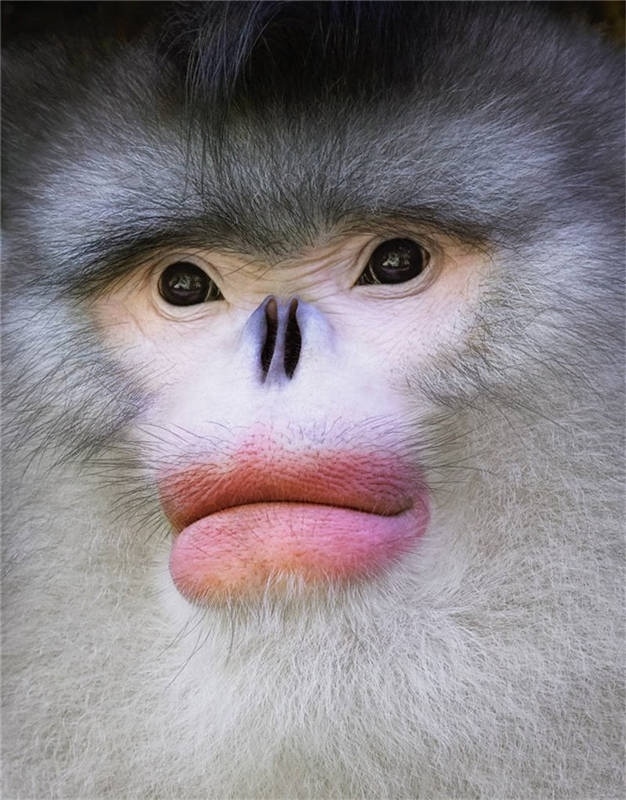 記得我和助手連續(xù)幾天反復登山,幾周后,我們終于發(fā)現(xiàn)了金絲猴。它們看起來就像做了整容手術(shù),有著大紅唇等獨特的特征。有一天,我順著山路,壓根沒在想金絲猴。突然,我發(fā)現(xiàn)在我腳邊,它正直視著我,我轉(zhuǎn)身按動快門,抓拍到那張近距離的動物肖像。