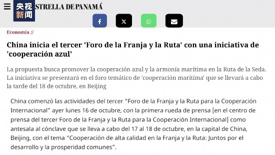 第三屆“一帶一路”國際合作高峰論壇也受到多國主流媒體關注。巴拿馬歷史最悠久,全國發(fā)行量最大的日報之一《巴拿馬星報》刊發(fā)了主題報道,聚焦高峰論壇發(fā)布的《“一帶一路”藍色合作倡議》,并評論稱這一倡議體現(xiàn)了中國對于高質(zhì)量推進“一帶一路”海洋合作的高度重視。