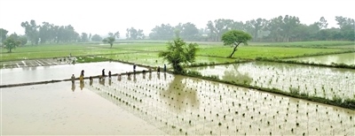 時值正午,驕陽似火。在拉合爾西南郊的一處雜交水稻試驗田里,來自中國湖南的農(nóng)業(yè)專家龍春久正在同當(dāng)?shù)剞r(nóng)民和技術(shù)員一起進(jìn)行雜交水稻選種試驗。頭戴草帽,褲腳挽至膝蓋,龍春久在泥濘的水田里彎腰插秧,汗水從他黝黑的面龐上淌下。