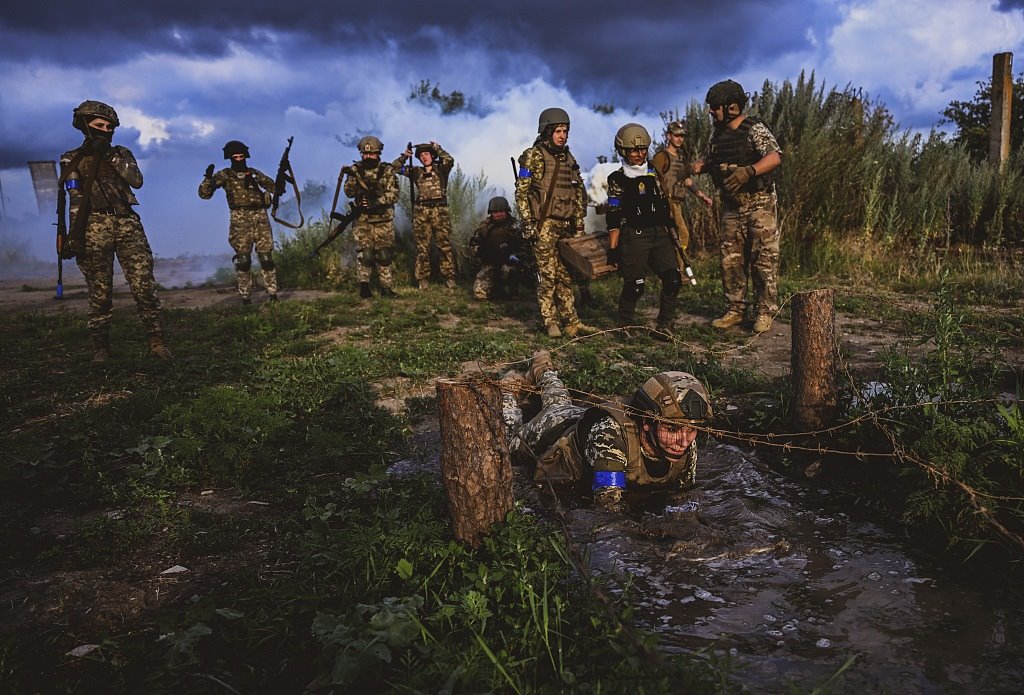 當?shù)貢r間2023年7月15日,扎波羅熱地區(qū),烏克蘭女兵在不同的戰(zhàn)斗場景中進行訓練。