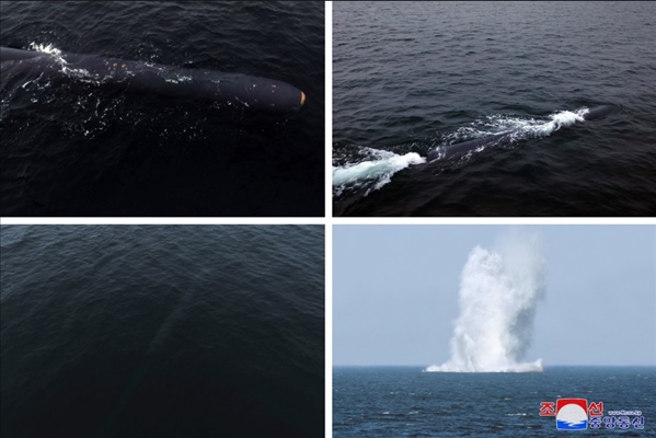 去年3月,朝鮮進(jìn)行了一系列軍事訓(xùn)練活動(dòng),包括新型水下攻擊武器系統(tǒng)試驗(yàn),其中,“海嘯”的核無人潛水攻擊艇首次亮相。試驗(yàn)在朝鮮咸鏡南道利原郡海岸進(jìn)行,在80米至150米深度潛航了約59小時(shí),最后到達(dá)假想敵人港口的洪原灣水域目標(biāo)點(diǎn)爆炸。一個(gè)月后朝鮮公開了“海嘯-2”型核無人潛水攻擊艇,朝方稱,該艇進(jìn)行了71小時(shí)、1000千米的潛航試驗(yàn),驗(yàn)證了潛水式戰(zhàn)略武器系統(tǒng)的可靠性和致命打擊能力。