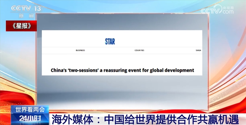 央視網(wǎng)消息:連日來,海外媒體對中國兩會的關(guān)注持續(xù)升溫,中國經(jīng)濟、合作共贏成為了海外媒體報道中國兩會的關(guān)鍵詞。