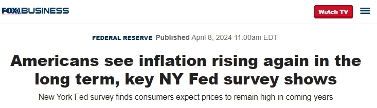 ??怂股虡I(yè)頻道在其另一篇報道中提到,據(jù)8日公布的一項紐約聯(lián)邦儲備銀行(Federal Reserve Bank of New York)進(jìn)行的消費者預(yù)期調(diào)查顯示,美國人正在為未來幾年的高通脹率做準(zhǔn)備,公眾普遍的預(yù)期中值為從現(xiàn)在起一年內(nèi)通脹率將上升3%,與前幾個月持平,并在未來幾年通脹將保持高位,這表明他們認(rèn)為粘性通脹恐會持續(xù)下去。
