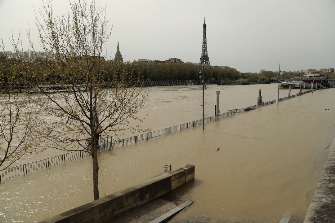 當?shù)貢r間2024年4月6日,法國巴黎,塞納河沿岸被洪水淹沒。