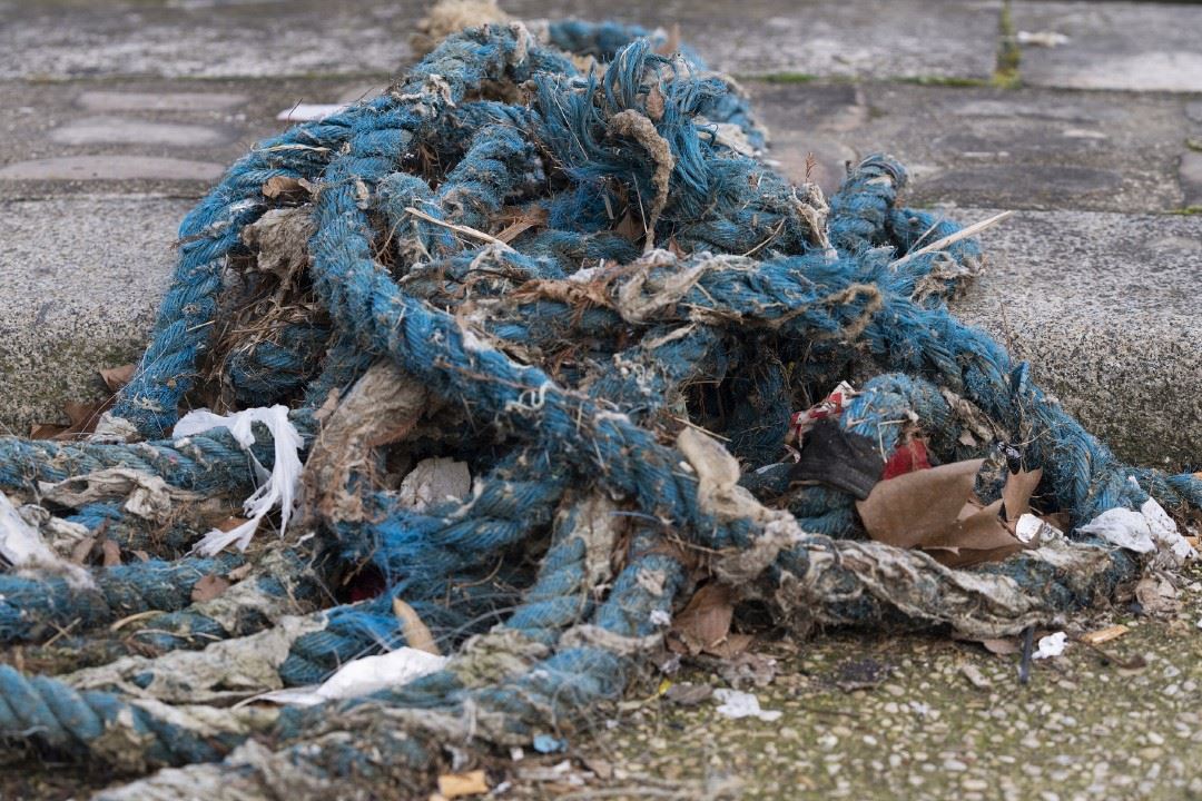 當?shù)貢r間2024年2月14日,法國巴黎,塞納河岸邊被丟棄的繩子和垃圾。
