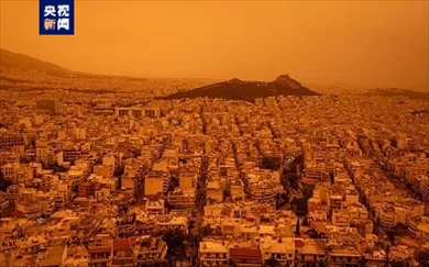 當(dāng)?shù)貢r(shí)間23日,希臘雅典遭遇來(lái)自非洲撒哈拉沙漠的沙塵侵襲。當(dāng)天在希臘議會(huì)大樓附近拍攝的畫(huà)面顯示,雅典城市上空變成橙黃色,樓房和街道籠罩在沙塵之中。