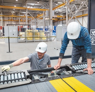 位于匈牙利比奧托爾巴吉的蔚來能源歐洲工廠車間場景。桑多爾·班庫迪攝