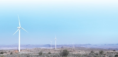 位于南非北開(kāi)普省德阿鎮(zhèn)的中國(guó)國(guó)家能源集團(tuán)龍?jiān)措娏δ戏枪具\(yùn)營(yíng)的德阿風(fēng)電項(xiàng)目風(fēng)機(jī)。新華社記者 董江輝攝