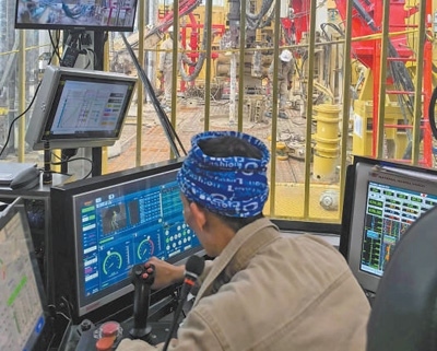 通過參與艾伯特湖區(qū)油田建設(shè),東方宏華還研發(fā)出“一鍵聯(lián)動”舉升式排管系統(tǒng),以舉升移運(yùn)、多系統(tǒng)協(xié)同、離線作業(yè)、智能感知、一鍵集控五大技術(shù)為核心,實現(xiàn)在地面、臺面和高空三大區(qū)域的自動化作業(yè)?!坝辛宋覀冏灾餮邪l(fā)的智能系統(tǒng)加持,操作人員只需點(diǎn)擊屏幕,就可以完成接立柱和鉆井等操作?!睎|方宏華所屬宏華電氣副總經(jīng)理汪虹宇介紹。