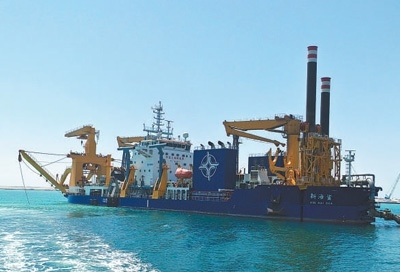 在阿聯(lián)酋首都阿布扎比附近淺海海域,由中國港灣工程有限責(zé)任公司(以下簡稱“中國港灣”)總承包、中交上海航道局有限公司負(fù)責(zé)具體實施的阿聯(lián)酋“新海鯊”疏浚項目現(xiàn)場,中國自主研發(fā)的全新一代超大型自航絞吸式挖泥船“新海鯊”輪正在緊張作業(yè)。藍(lán)色的船身、黃色的橋架,在碧綠的海面映襯下格外醒目。