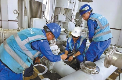 穆巴希爾手拿巡檢單,穿過(guò)縱橫的管道,仔細(xì)檢查海水淡化設(shè)備的運(yùn)轉(zhuǎn)情況。作為阿聯(lián)酋烏姆蓋萬(wàn)海水淡化項(xiàng)目的現(xiàn)場(chǎng)工程師,穆巴希爾每天上班的第一件事就是進(jìn)行現(xiàn)場(chǎng)巡查,及時(shí)處理異常情況?!拔覀兊么_保提供穩(wěn)定、清潔、優(yōu)質(zhì)的生活用水?!彼f(shuō)。