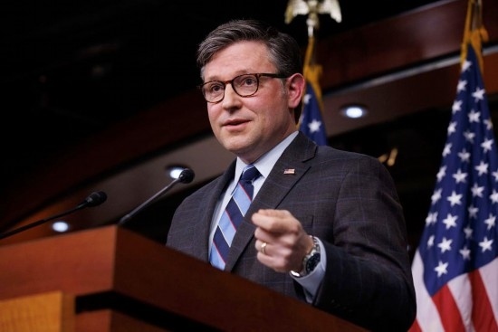 2月6日,在美國華盛頓,美國國會眾議院議長邁克·約翰遜舉行記者會。新華社發(fā)(亞倫攝)