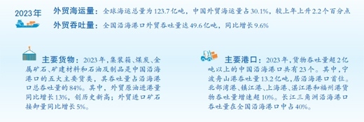 在全球范圍內(nèi),超八成的國際貿(mào)易通過海上運輸實現(xiàn),海運是中國外貿(mào)的“大動脈”。《中國港口運行分析報告(2024)》(以下簡稱《報告》)顯示,2023年,在外貿(mào)需求回暖、全球貿(mào)易體系重塑等因素推動下,中國外貿(mào)海運規(guī)模增長較快,全國沿海港口外貿(mào)吞吐量達49.6億噸,同比增長9.6%。