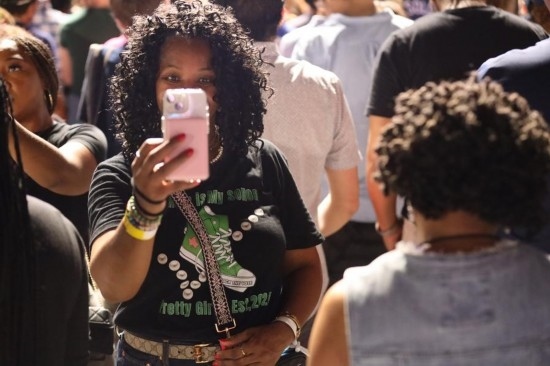 2024年10月25日,美國民主黨總統(tǒng)候選人哈里斯在得克薩斯州休斯敦舉行競選集會,聚焦女性生育自主權。這是一名女子在集會上自拍。新華社記者徐劍梅攝