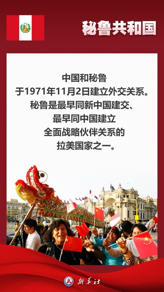 應(yīng)秘魯共和國總統(tǒng)博魯阿爾特邀請(qǐng),國家主席習(xí)近平將于11月13日至17日赴利馬出席亞太經(jīng)合組織第三十一次領(lǐng)導(dǎo)人非正式會(huì)議并對(duì)秘魯進(jìn)行國事訪問。秘魯位于南美洲西部,是印加文明發(fā)祥地,也是最早同新中國建交的拉美國家之一。關(guān)于秘魯,七張海報(bào)帶你了解更多——