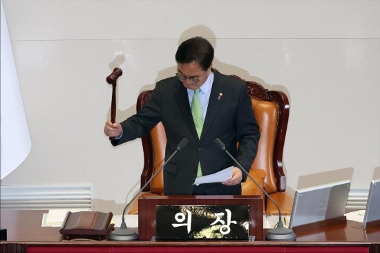 最終,在7日下午的國會(huì)全體會(huì)議上,絕大多數(shù)執(zhí)政黨議員先是對(duì)涉總統(tǒng)夫人的“金建希特檢法”投下反對(duì)票將其否決,隨后紛紛退場,拒絕參加接下來的總統(tǒng)彈劾動(dòng)議案表決,導(dǎo)致該動(dòng)議案因投票人數(shù)不足未獲通過。