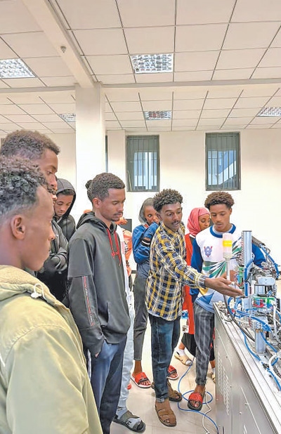 埃塞俄比亞魯班工坊當地教師為學生們講解機電一體化設備的操作方法。