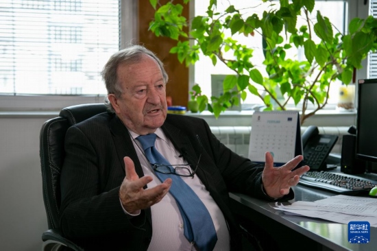 2月27日,塞爾維亞貝塔通訊社社長(zhǎng)拉多米爾·迪克利奇在首都貝爾格萊德接受新華社記者專訪。新華社記者 石中玉 攝