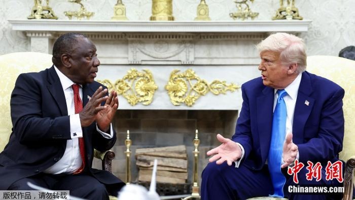 2025年5月21日,美國總統(tǒng)特朗普在白宮橢圓形辦公室會(huì)見南非總統(tǒng)拉馬福薩。