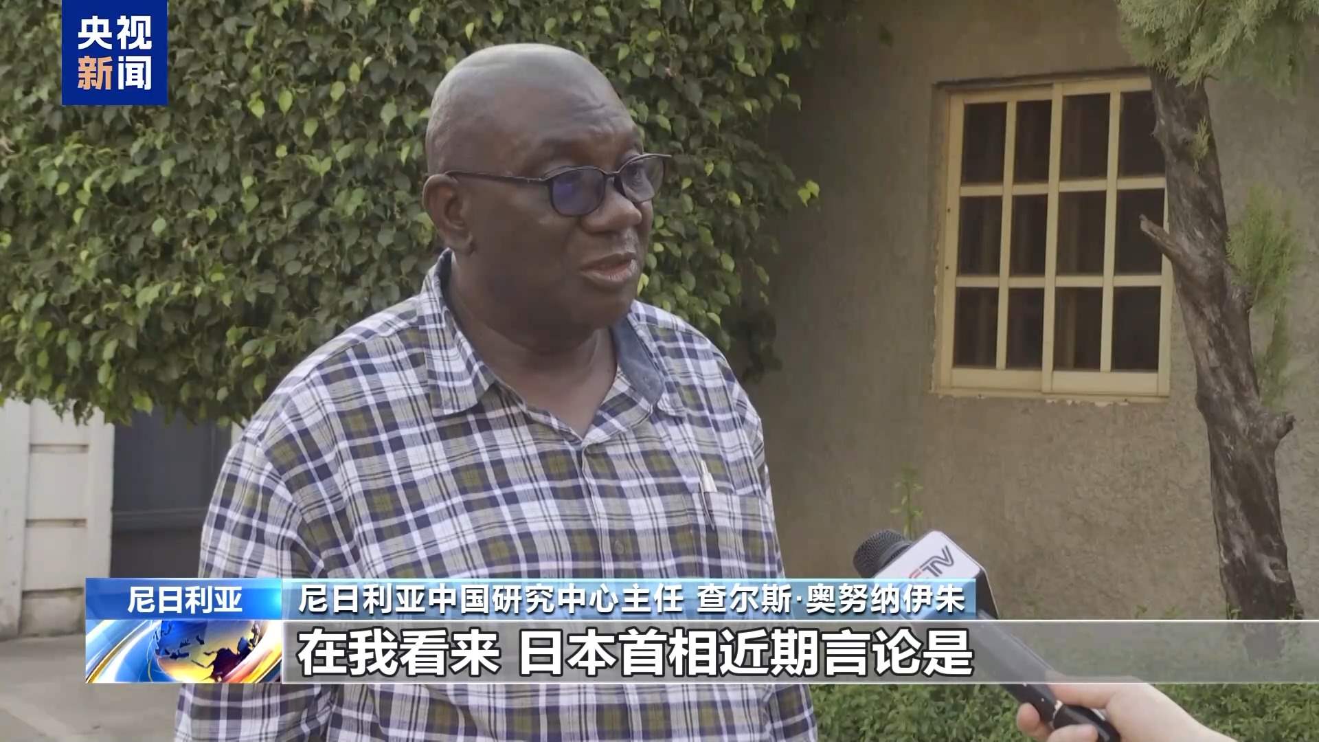 尼日利亞中國研究中心主任 查爾斯·奧努納伊朱:在我看來,日本首相近期言論是對(duì)中國內(nèi)政的挑釁和干涉,1971年在聯(lián)合國大會(huì)上,國際社會(huì)已達(dá)成共識(shí),臺(tái)灣問題是中國的內(nèi)政,因此任何提及臺(tái)海局勢(shì),可能對(duì)日本構(gòu)成威脅的言論,都是對(duì)中國內(nèi)政的干涉。我認(rèn)為世界各國應(yīng)該保持高度警惕,各地區(qū)組織及國際組織更應(yīng)再次發(fā)聲,堅(jiān)決杜絕日本重蹈覆轍,重走嚴(yán)重破壞國際秩序的老路。