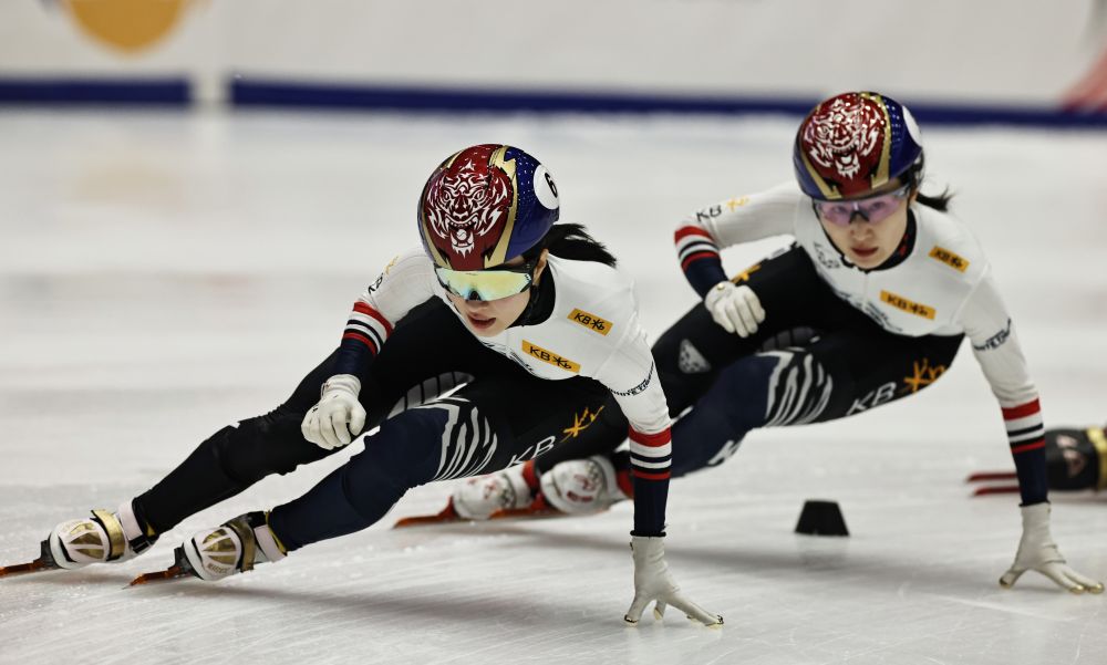 資料圖:韓國(guó)選手金吉莉(左)、崔敏靜在2025-2026賽季短道速滑世界巡回賽暨米蘭冬奧會(huì)資格賽第三站女子1500米A組決賽中。新華社記者 高靜 攝