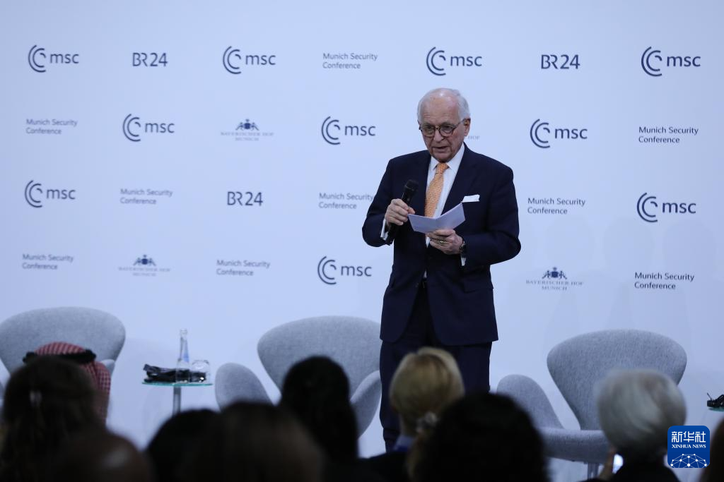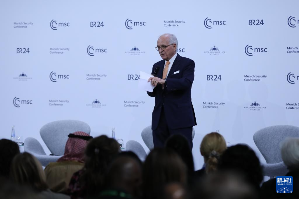 2月15日,在德國慕尼黑,慕安會主席沃爾夫岡·伊申格爾在閉幕式上致辭。新華社記者 杜哲宇 攝